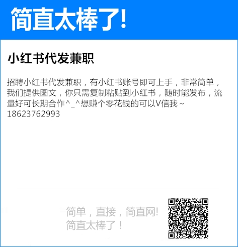 招聘小红书代发兼职,有小红书账号即可上手,非常简单,我们提供图文,你只需复制粘贴到小红书,随时能发布,流量好可长期合作^_^想赚个零花钱的可以V信我~18623762993