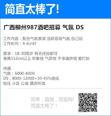 广西柳州987酒吧招募 气氛 DS(若干人)