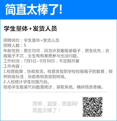 招聘岗位:学生量体+发货人员