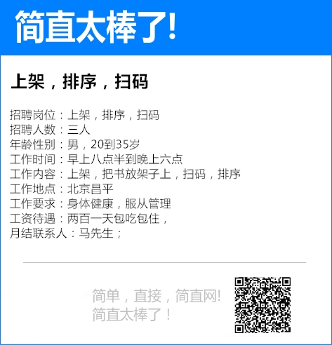 招聘岗位:站岗执勤 招聘人数:8 年龄性别:18-45 工作时间:8 月 9 日-13 日,两班倒 工作内容:站岗巡逻 工作地点:西城白纸坊 工作要求:无犯罪,退伍军人优先 工资待遇:每...