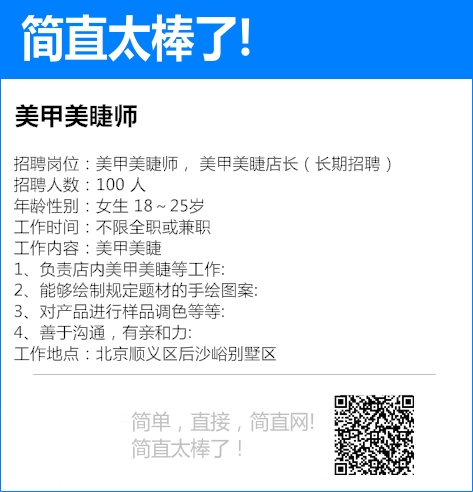 招聘单位:通州临河里地铁站影城 招聘岗位:影城兼职 招聘人数:长期 年龄性别:22-45岁 工作时间:日常班次有四个,每个班次3-4小时,可以自主选择班次 工作内容:卖品 +检票 工作地点...