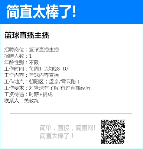 兼职岗位:演出票兑换发放 招聘人数:2人年龄性别:男女不限 工作时间:12月21日18:30-20:30 工作内容:演出票兑换发放 工资待遇:80元+工作餐+免费看演出 工作地点:北京音乐厅...